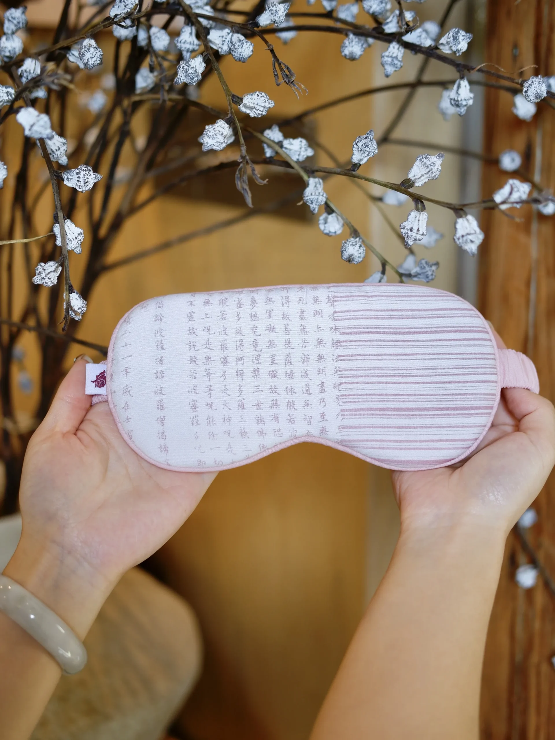 Wyciszająca maska na oczy łączy filozofię wellness, piękno minimalistycznego designu i duchowe przesłanie – błogosławieństwo płynące z Sutry Serca (心经 – Heart Sutra), jednego z najstarszych buddyjskich tekstów o harmonii, świadomości i pustce, z której rodzi się spokój.