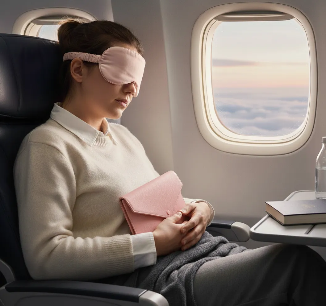 - Kompaktową kosmetyczkę / etui podróżne – elegancką i praktyczną, idealną na paszport, karty lub ulubione zapachy.