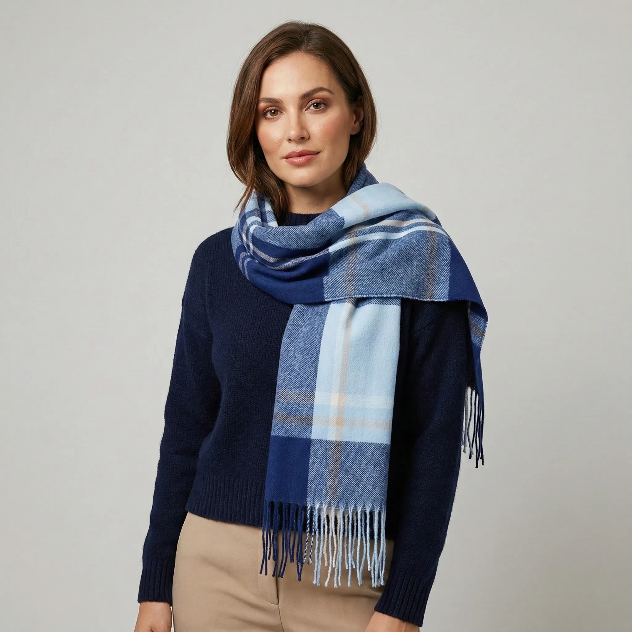 Szalik o strukturze inspirowanej kaszmirem – lekki, miękki i idealnie otulający. Stworzony z mikrowłókien poliestrowych nowej generacji, które zapewniają wyjątkowe ciepło, trwałość i elegancję. Wybór dla tych, którzy cenią luksus w najczystszej formie – subtelny, dopracowany, ponadczasowy.